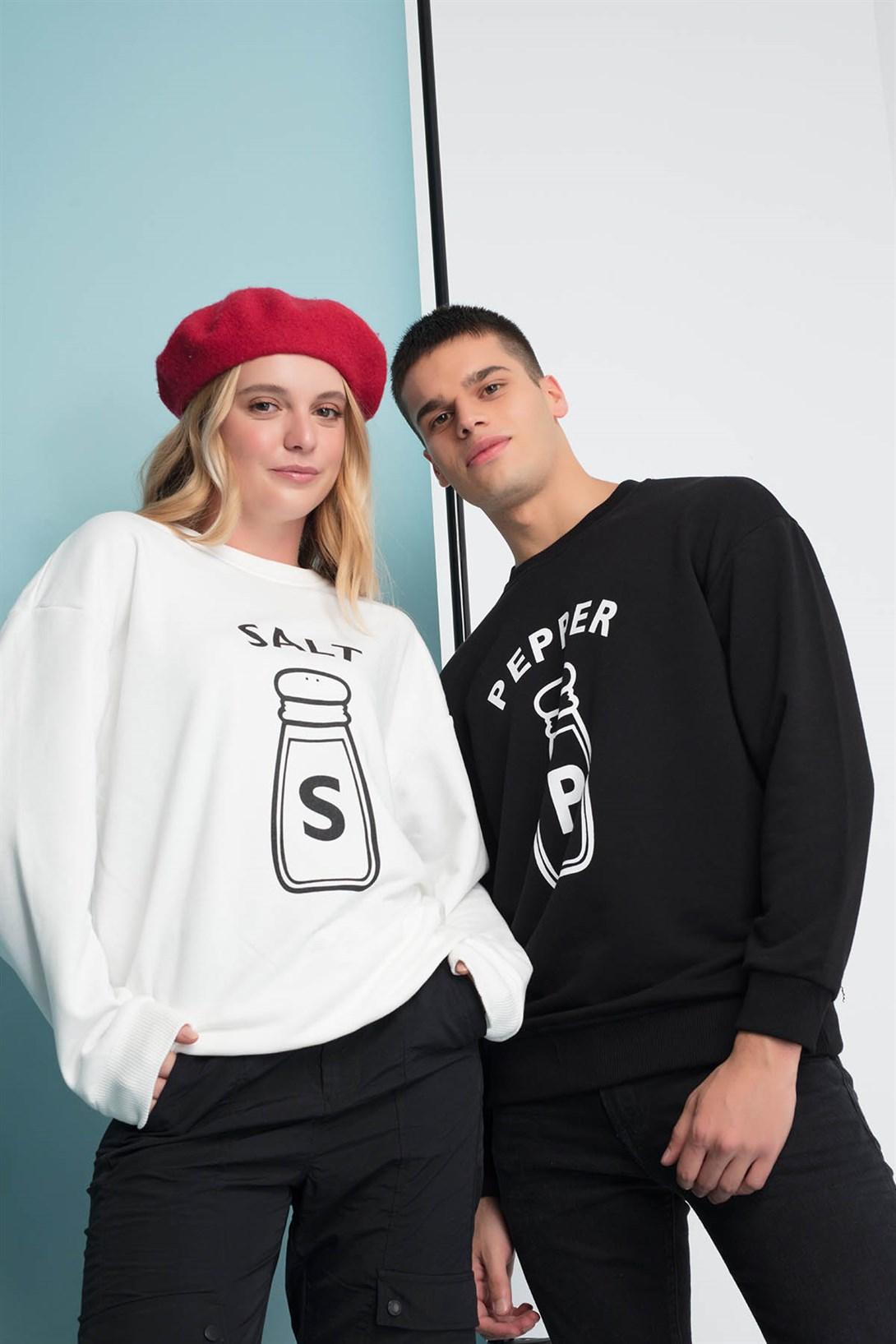 Pepper & Salt Couple Yuvarlak Yaka Sweatshirt Siyah %100 Pamuk