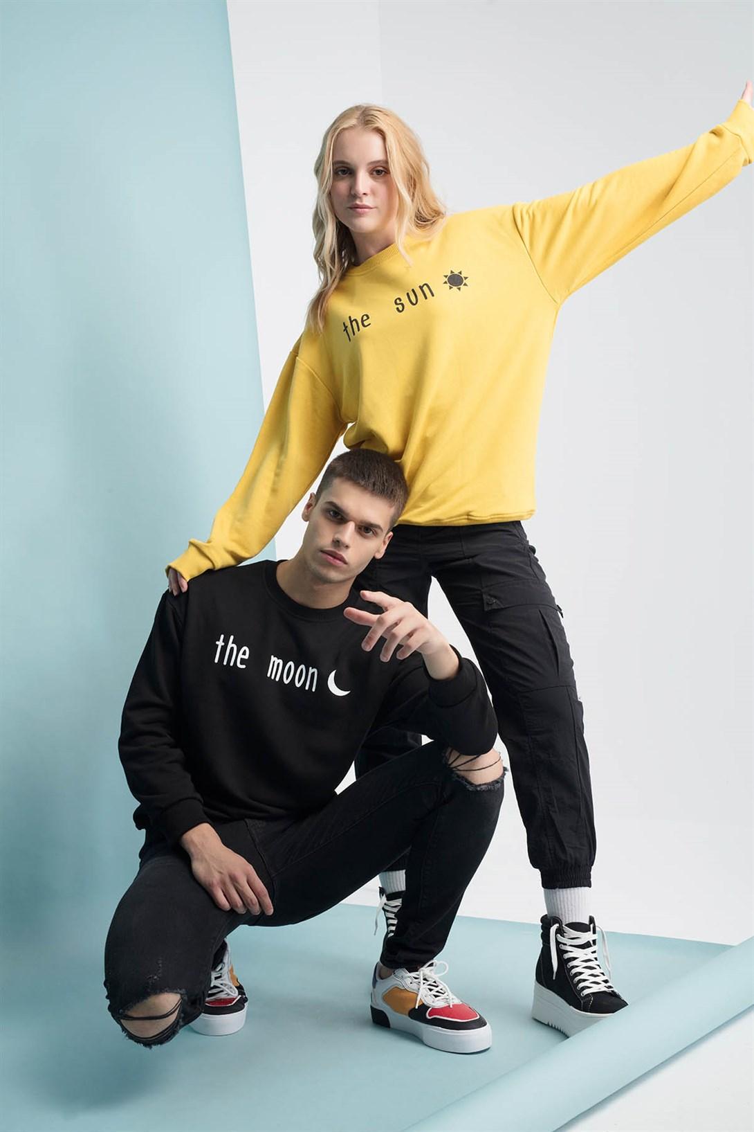 The Moon & The Son Couple Yuvarlak Yaka Sweatshirt Siyah %100 Pamuk